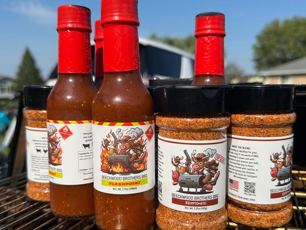Founded in 2024 in the heart of Ames, Iowa, Beechwood Brothers BBQ is more than just a brand—it's a passion turned into a culinary legacy. Inspired by the rich tradition of American barbecue, we've crafted a championship-winning all-purpose BBQ rub known as KRYPTONITE and a bold all-purpose hot sauce known as FLASHPOINT. These top secret blends of spices and sauces, perfected over grill-side trials and triumphs, bring a unique, bold flavor to every bite.